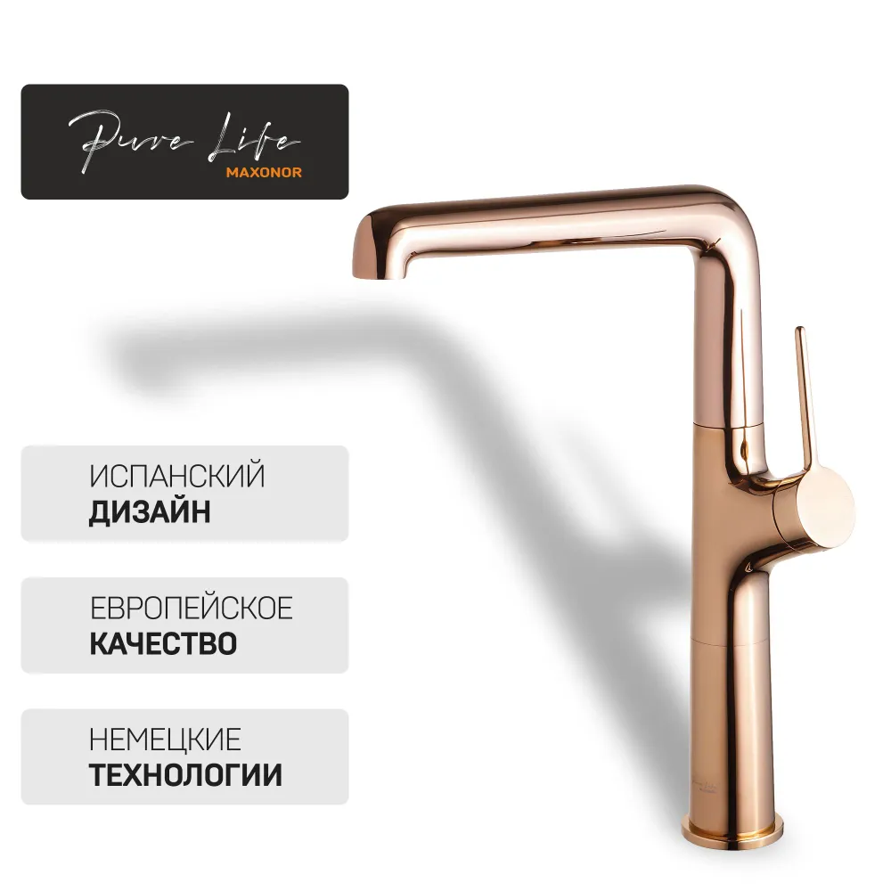 Смеситель для кухни Maxonor PL4094-16 поворотный излив золотой - купить в интернет-магазине Орегон с доставкой в регионы Крыма.