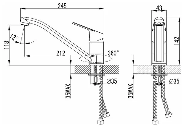 «Смеситель для кухни MILARDO Amur AMUSB00M05 поворотный излив хром глянец» в Ялте и Крыму