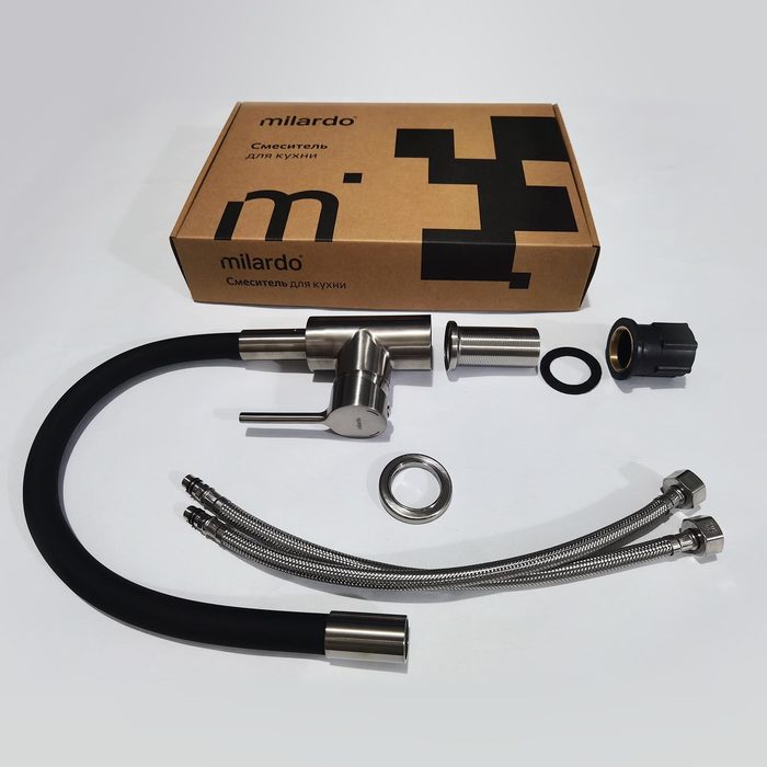 Смеситель для кухни MILARDO Meal M01BN0FM05 гибкий излив сатин - купить в интернет-магазине Орегон с доставкой в регионы Крыма.