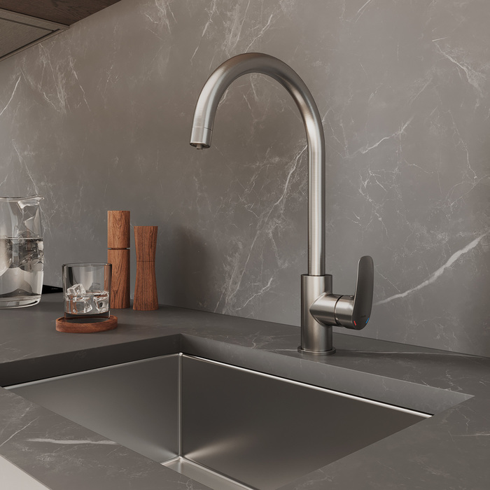 Смеситель для кухни MILARDO Rora RORBNFJM05 с фильтром сатин - купить в интернет-магазине Орегон с доставкой в регионы Крыма.