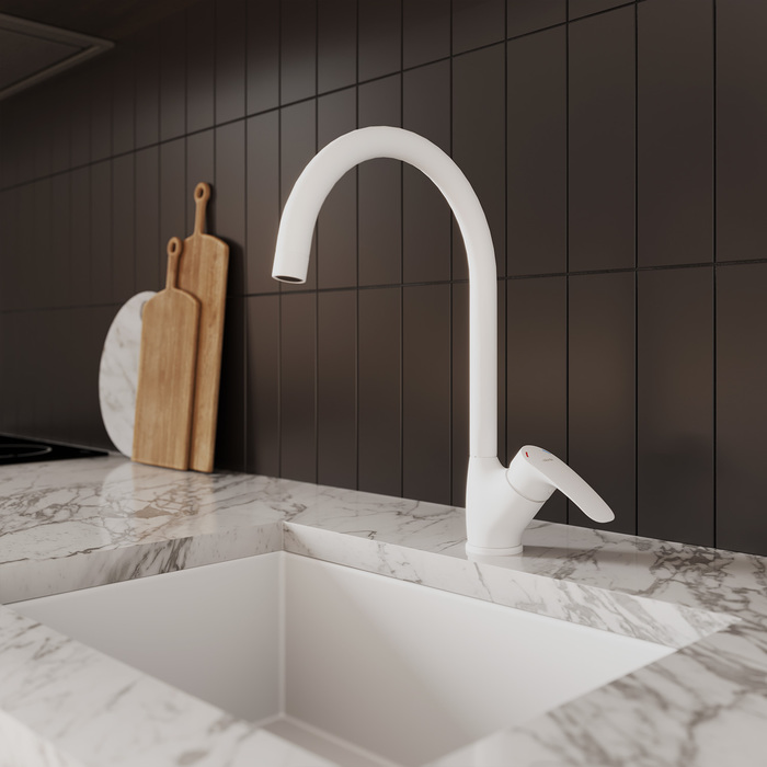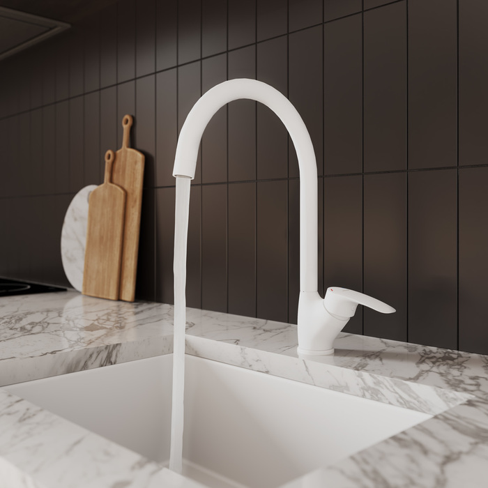 Смеситель для кухни MILARDO Rora RORWT0JM05 поворотный излив белый матовый - купить в интернет-магазине Орегон с доставкой в регионы Крыма.