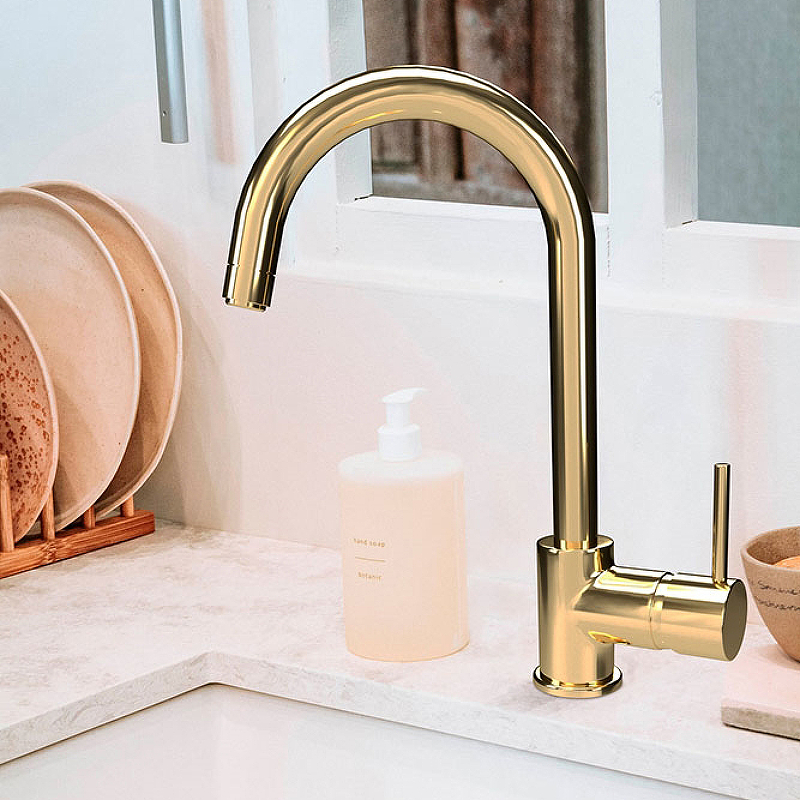 Смеситель для кухни Paini Cox 78OT572LMKM поворотный излив золото - купить в интернет-магазине Орегон с доставкой в регионы Крыма.