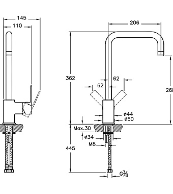 Смеситель для кухни VITRA Flo S A42103EXP поворотный излив хром