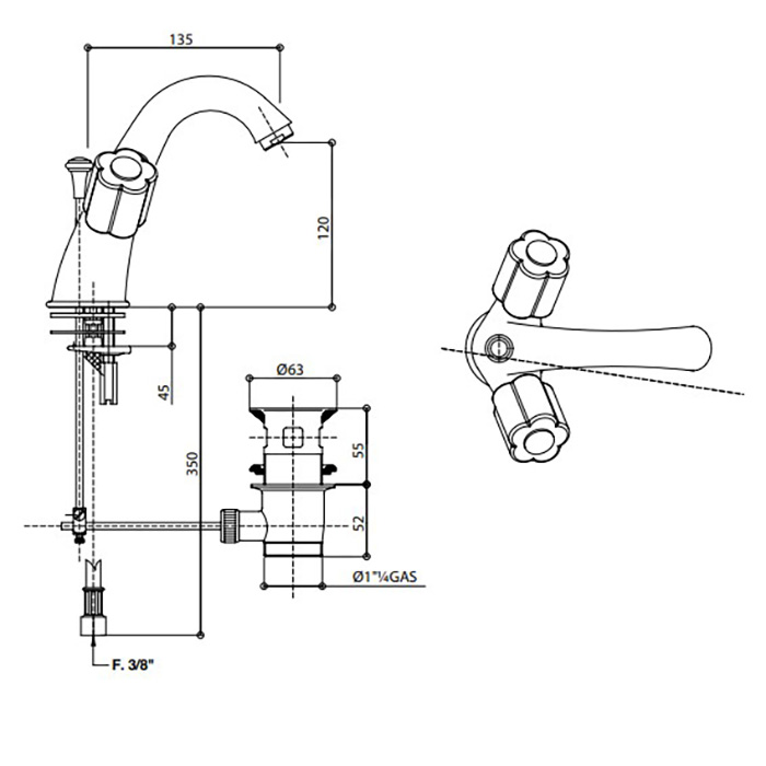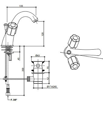 Смеситель для раковины Bongio Fleur Blanc 11521OR00 золото - купить в интернет-магазине Орегон с доставкой в регионы Крыма.