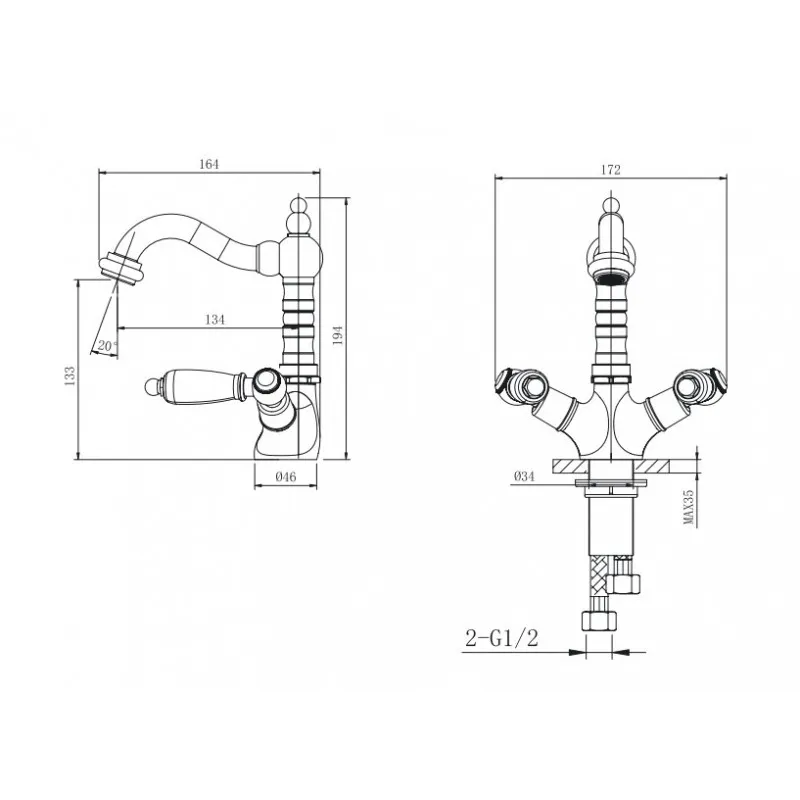 Смеситель для раковины CAPRIGO ADRIA-CLASSIC 03-526-vot бронза - купить в интернет-магазине Орегон с доставкой в регионы Крыма.