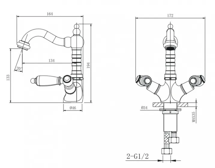 Смеситель для раковины CAPRIGO ADRIA-CLASSIC BLACK EDITION 03B-526-vot бронза - купить в интернет-магазине Орегон с доставкой в регионы Крыма.