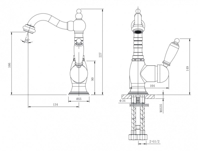 Смеситель для раковины CAPRIGO FONTE 12-524-vot бронза - купить в интернет-магазине Орегон с доставкой в регионы Крыма.