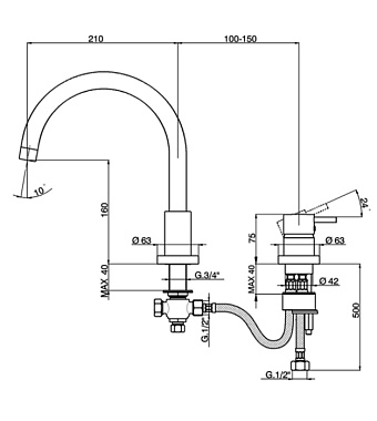 Смеситель для раковины Cisal Less New LN00125040 чёрный (матовый) - купить в интернет-магазине Орегон с доставкой в регионы Крыма.