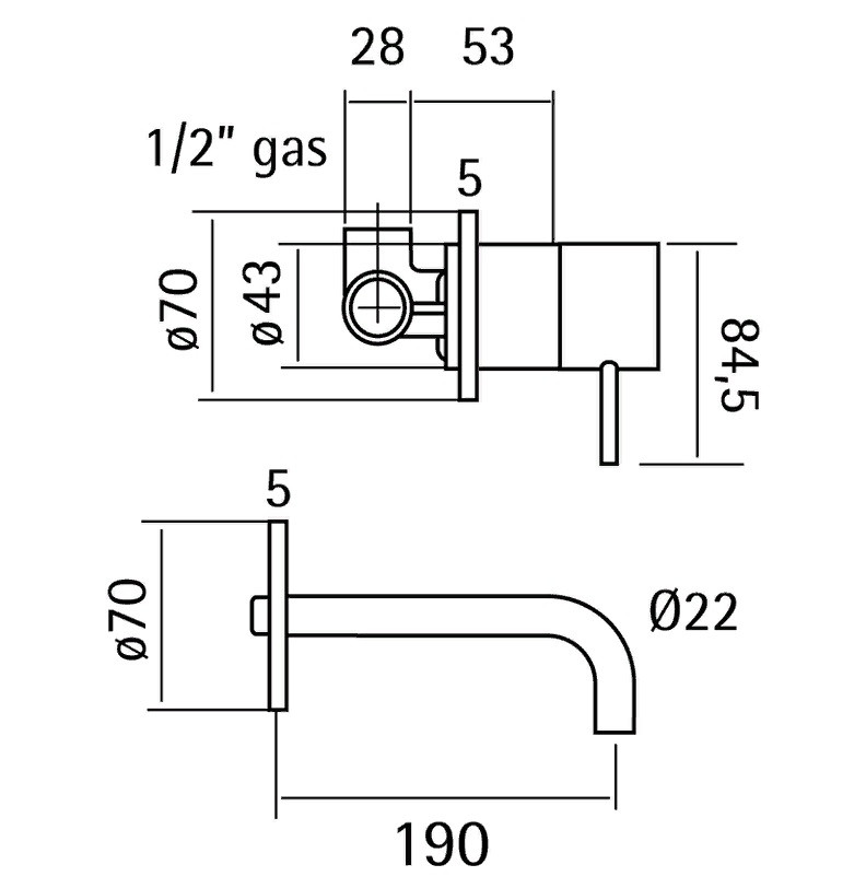 Длина излива, см 19