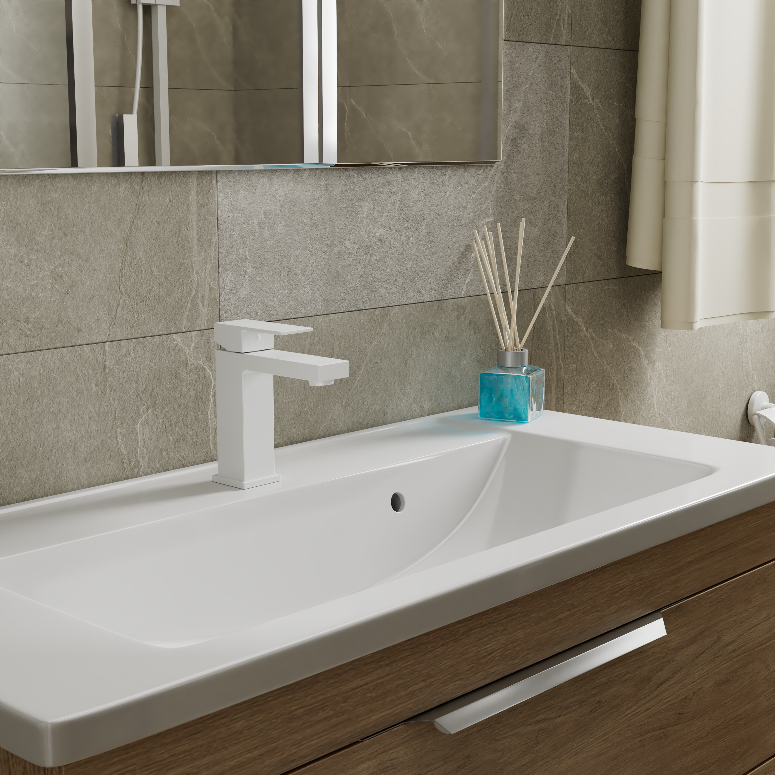 Смеситель для раковины D&K Bayern.Liszt DA1512108 матовый белый - купить в интернет-магазине Орегон с доставкой в регионы Крыма.
