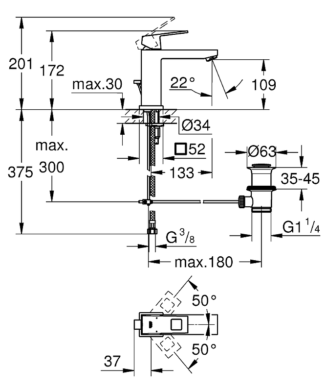Вращение излива фиксированный