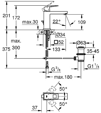 Смеситель для раковины GROHE Eurocube 23445AL0 Тёмный графит матовый - купить в интернет-магазине Орегон с доставкой в регионы Крыма.