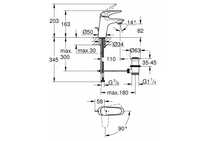 Смеситель для раковины GROHE Eurostyle 23709LS3 белый