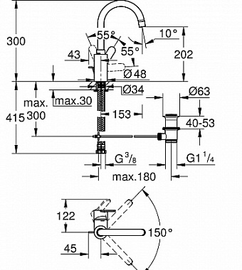 Вращение излива поворотный