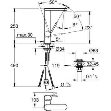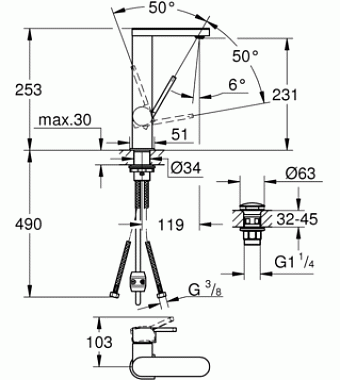 Смеситель для раковины GROHE Plus 23844003 хром