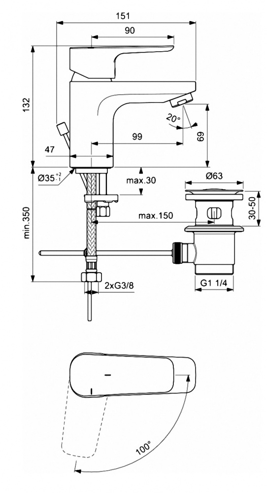 Смеситель для раковины IDEAL STANDARD CERAPLAN III SLIM BC566AA хром