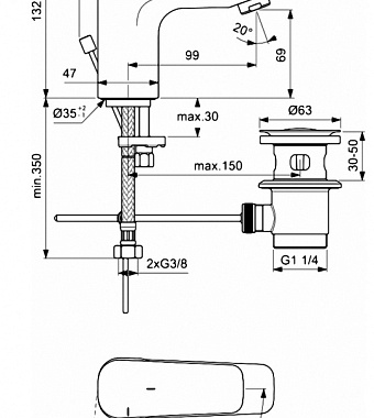 Смеситель для раковины IDEAL STANDARD CERAPLAN III SLIM BC566AA хром - купить в интернет-магазине Орегон с доставкой в регионы Крыма.