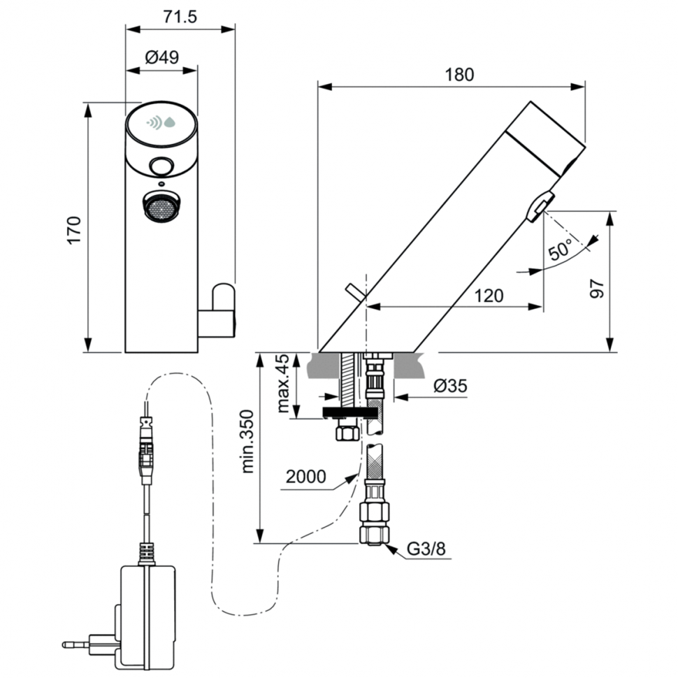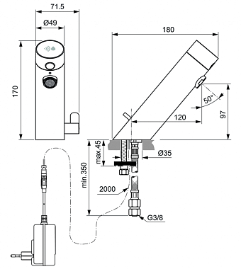 Смеситель для раковины IDEAL STANDARD SENSORFLOW NEW A7558AA chrome - купить в интернет-магазине Орегон с доставкой в регионы Крыма.