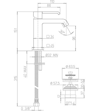 Дополнительные функции (Смесители) донный клапан с системой click-clack