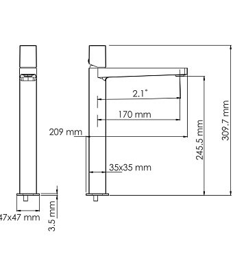 Длина излива, см 16.5