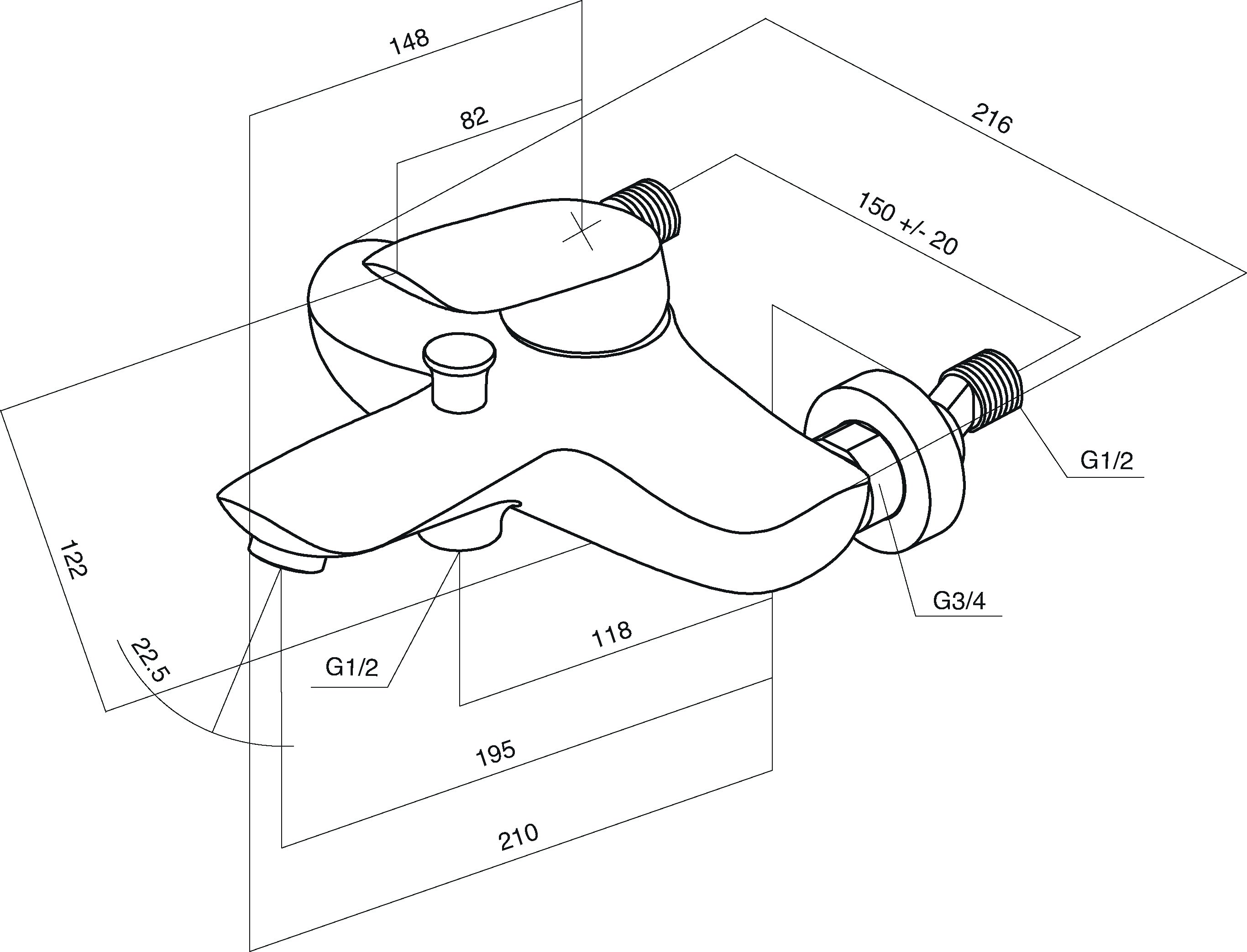 Смеситель для ванны AM-PM Bliss L F5310032 хром