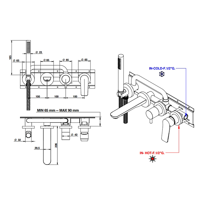 Смеситель для ванны Bongio GIO2 80550NSADPREU никель - купить в интернет-магазине Орегон с доставкой в регионы Крыма.