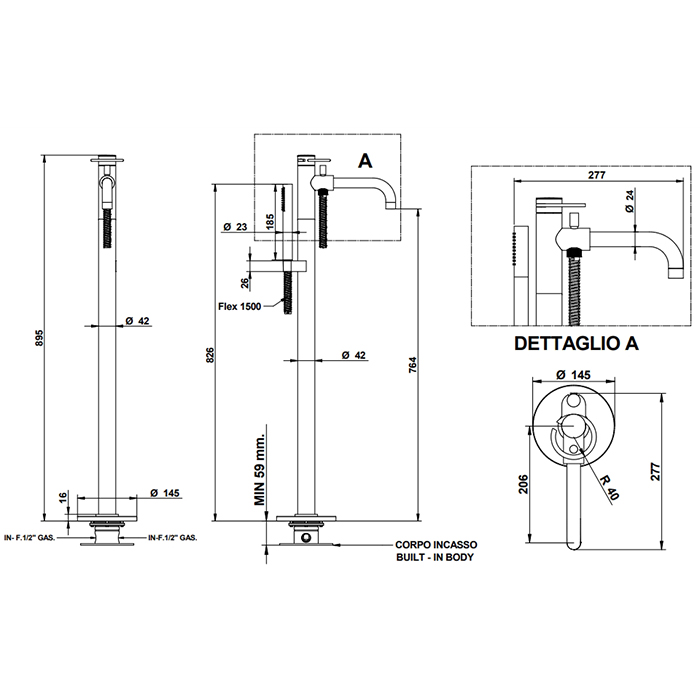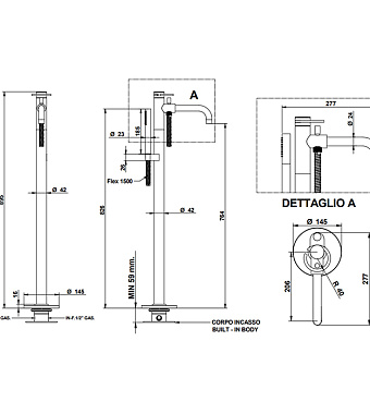 Смеситель для ванны Bongio LINEA 82534OPOP0DEU золото - купить в интернет-магазине Орегон с доставкой в регионы Крыма.