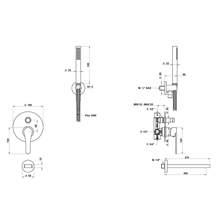 Смеситель для ванны Bongio O'Clock Green 14530NE0D матовый чёрный - купить в интернет-магазине Орегон с доставкой в регионы Крыма.
