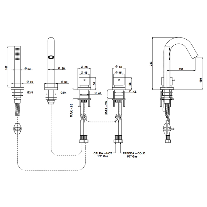 Смеситель для ванны Bongio Time 2020 73531AS0D нержавеющая сталь - купить в интернет-магазине Орегон с доставкой в регионы Крыма.