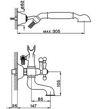 Смеситель для ванны Cisal Arcana America AA00012024 золото - купить в интернет-магазине Орегон с доставкой в регионы Крыма.