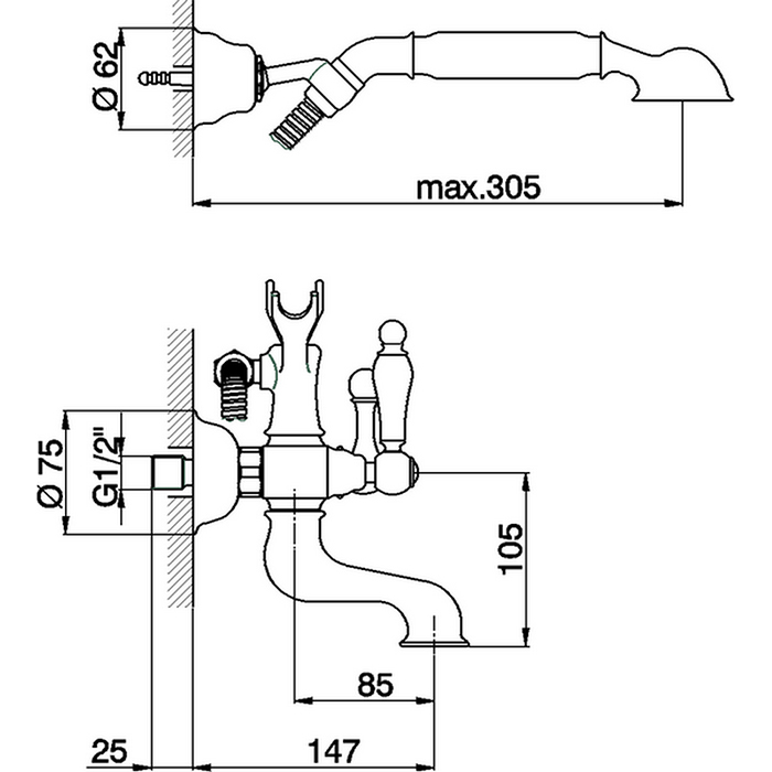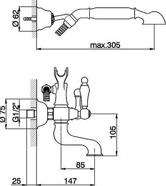 Смеситель для ванны Cisal Arcana Toscana TS00012021 хром - купить в интернет-магазине Орегон с доставкой в регионы Крыма.