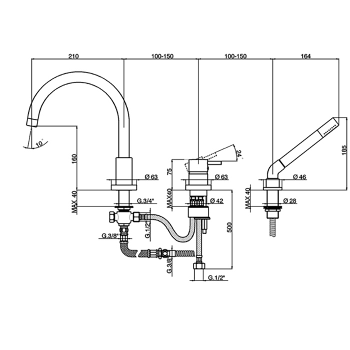Количество монтажных отверстий 3