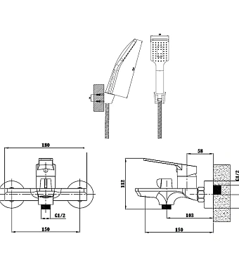 Смеситель для ванны ESKO SINGAPORE SB 54 чёрный матовый - купить в интернет-магазине Орегон с доставкой в регионы Крыма.