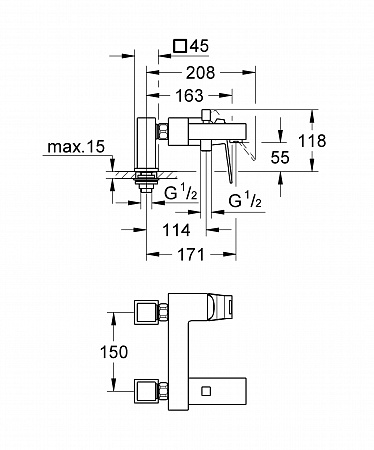 Смеситель для ванны GROHE Eurocube 23143000 хром