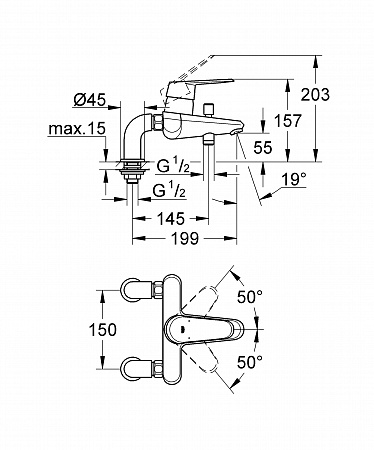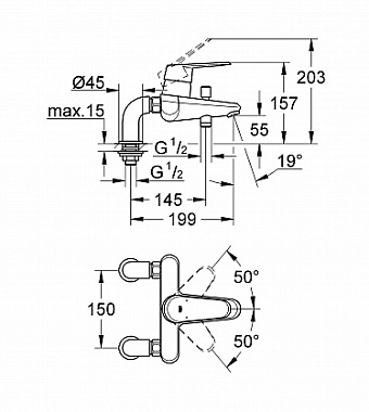 Смеситель для ванны GROHE Eurodisc Cosmopolitan 33392002 хром