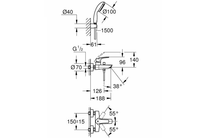 Смеситель для ванны GROHE Eurosmart 33302003 хром - купить в интернет-магазине Орегон с доставкой в регионы Крыма.