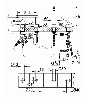 Смеситель для ванны GROHE Plus 29307003 хром
