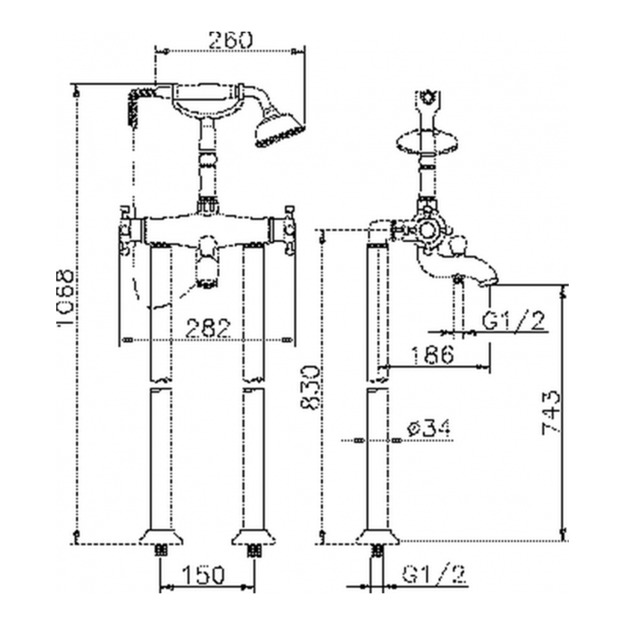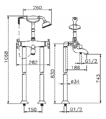 Смеситель для ванны Huber Victorian VTT3901021 хром - купить в интернет-магазине Орегон с доставкой в регионы Крыма.