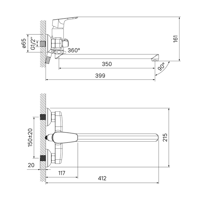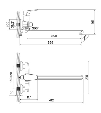 Вращение излива поворотный