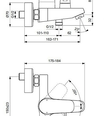 Смеситель для ванны IDEAL STANDARD CERAFLEX B1740AA хром - купить в интернет-магазине Орегон с доставкой в регионы Крыма.