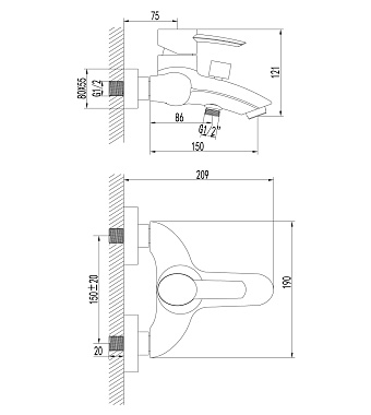 Смеситель для ванны LEMARK Atlantiss LM3202C хром - купить в интернет-магазине Орегон с доставкой в регионы Крыма.