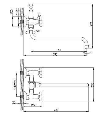 Вращение излива поворотный