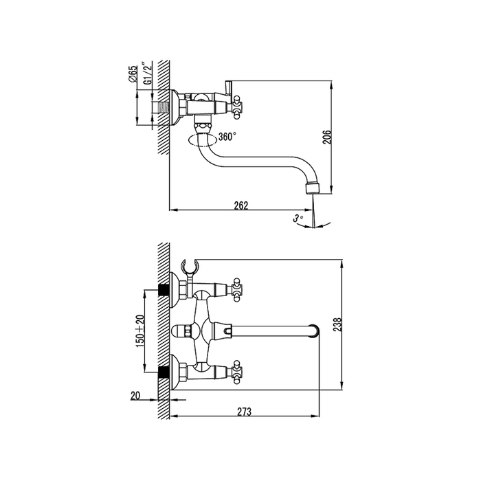 Смеситель для ванны MILARDO Victoria VICSB00M02 хром глянец