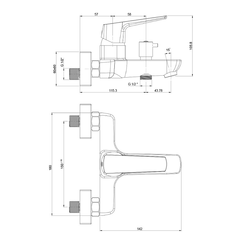 Длина излива, см 15.8