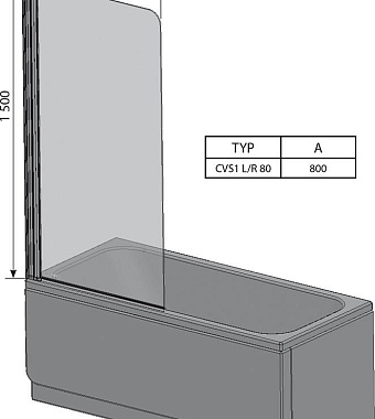 Стеклянная шторка на ванну RAVAK CVS1 7QL40100Z1 150х80см