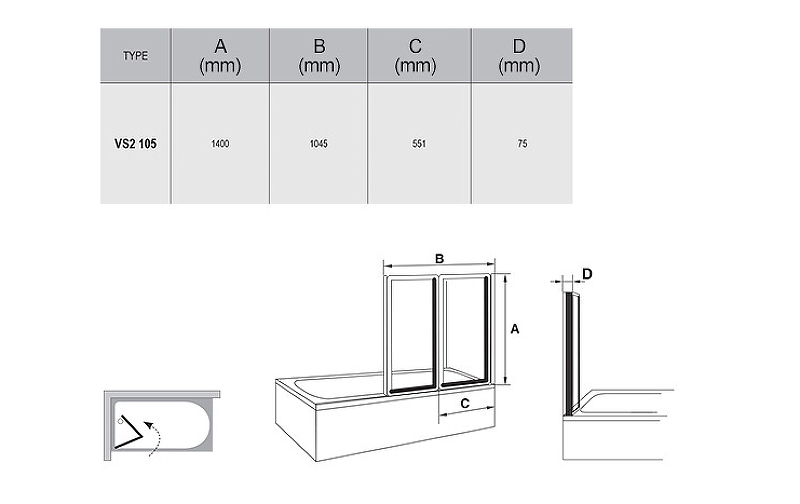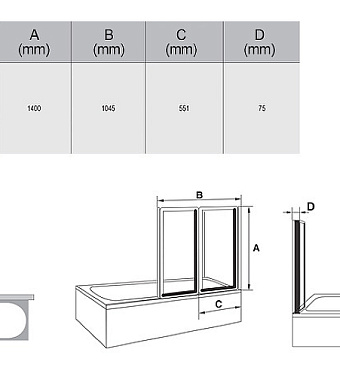 Стеклянная шторка на ванну RAVAK VS2 796M0100ZG 140х105см - купить в интернет-магазине Орегон с доставкой в регионы Крыма.