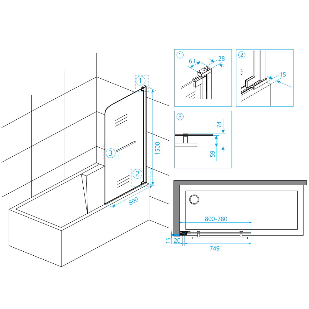 Стеклянная шторка на ванну RGW Screens 03110208-11 SC-02 150х80см - купить в интернет-магазине Орегон с доставкой в регионы Крыма.