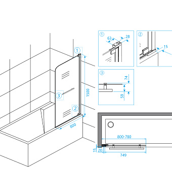 «Стеклянная шторка на ванну RGW Screens 03110208-11 SC-02 150х80см» в Ялте и Крыму