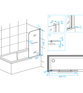 «Стеклянная шторка на ванну RGW Screens 03110608-11 SC-06 150х80см» в Ялте и Крыму