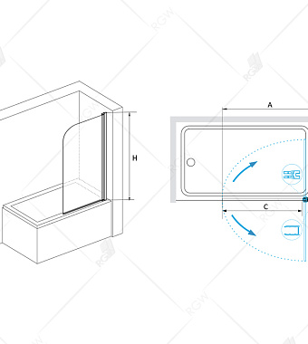 Стеклянная шторка на ванну RGW Screens SC-09 150х80см - купить в интернет-магазине Орегон с доставкой в регионы Крыма.